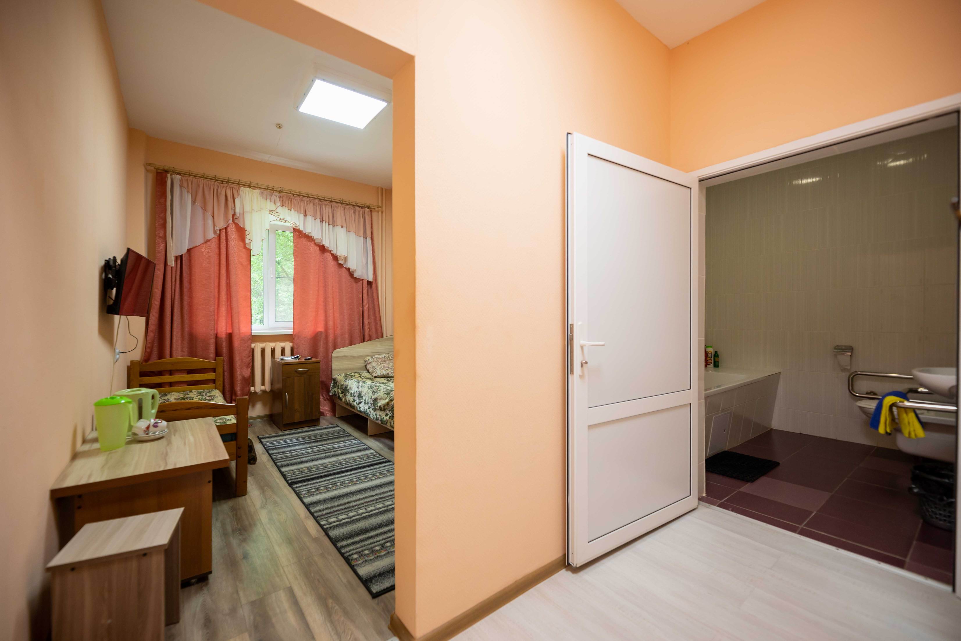 В номере: ванная комната с душевой кабиной, санузел, ТВ, электрочайник, холодильн...